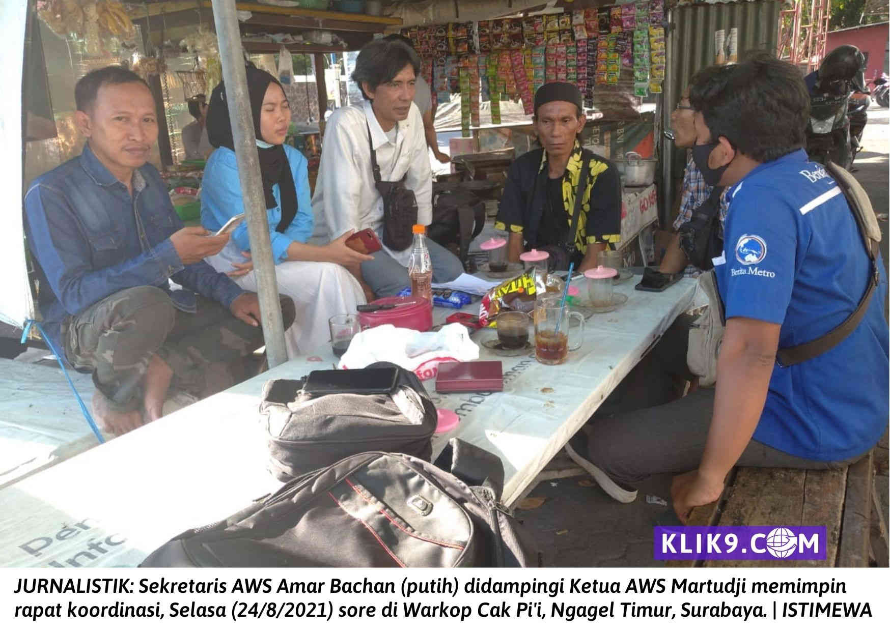 SURABAYA (Klik9.com) – Aliansi Wartawan Surabaya (AWS) bakal kembali melaksanakan bakti sosial (baksos). Hal ini terungkap dalam rapat koordinasi, Selasa (24/8/2021) lalu di Warkop Cak Pi’i, Jalan Ngagel Timur, Gubeng, Surabaya. Sasaran baksos kali ini adalah memberikan pelatihan jurnalistik selama…