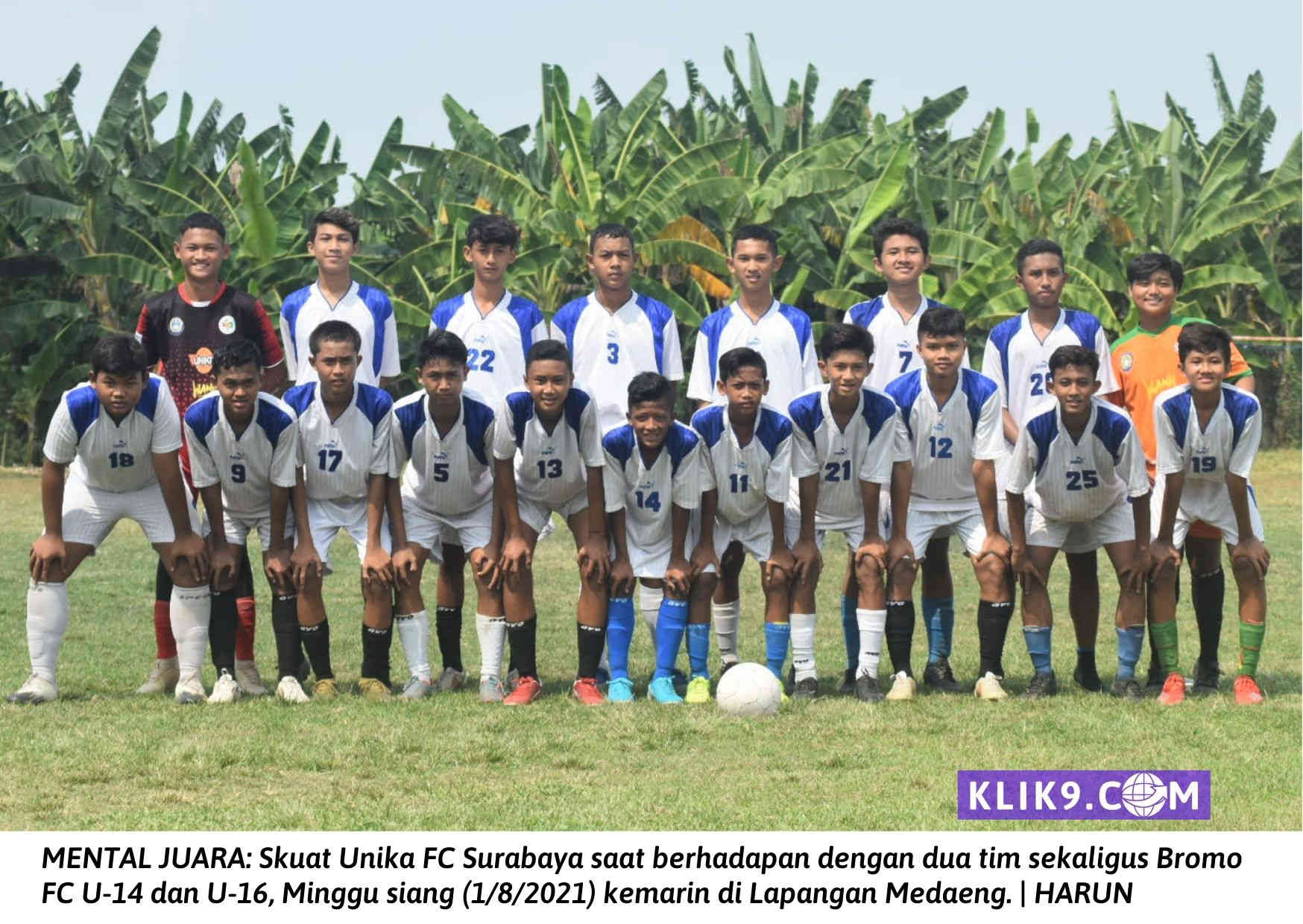 SIDOARJO, Klik9.com | Kesebelasan Unika FC Surabaya U-14 dan U-16 menuai hasil positif dalam laga uji coba melawan Bromo FC, Minggu siang (1/8/2021) kemarin di Lapangan Medaeng, Waru, Sidoarjo. Pada tim kelahiran 2007/08 menang 2-1 lewat gol Sukro dan Niko….