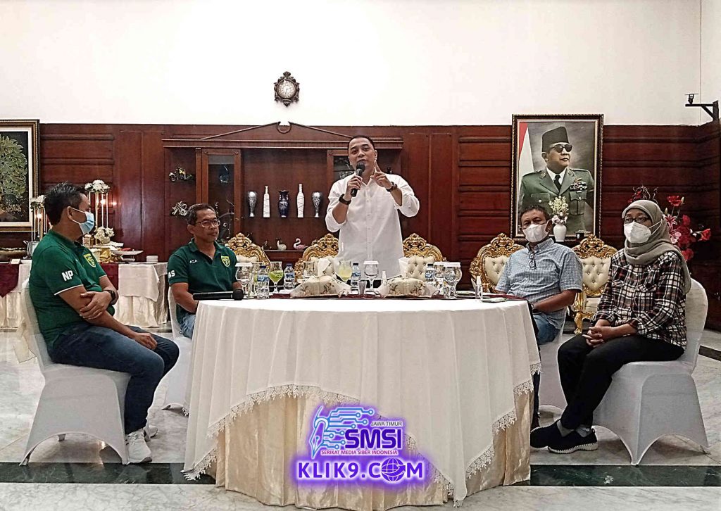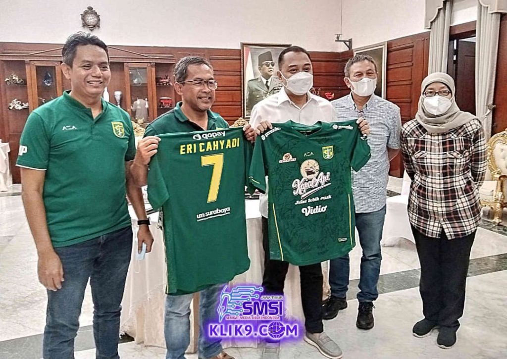 SURABAYA, Klik9.com | Wali Kota Surabaya Eri Cahyadi menerima kunjungan Persebaya Surabaya, Minggu (2/1/2022) siang di Kediaman Wali Kota, Jalan Sedap Malam, Surabaya.