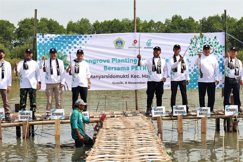 GRESIK (KLIK9.com) – Dalam rangka meningkatkan kelestarian alam dan lingkungan hidup serta menjaga keseimbangan lingkungan. Pemerintah Kabupaten (Pemkab) Gresik bersama Petronas Indonesia dan SKK Migas melakukan penanaman 10.000 bibit mangrove, Selasa (8/11/2022) pagi di kawasan Kalimireng Desa Manyar Sidomukti Kecamatan Manyar, Kabupaten Gresik.