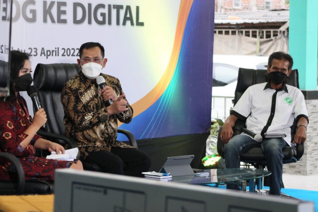 TV DIGITAL: Kadiskominfo Jatim Hudiyono (tengah) dan Ketua AWS Martudji saat dialog, Sabtu (23/4/2022) sore di Kedensari, Tanggulangin, Sidoarjo. (KS/IST)