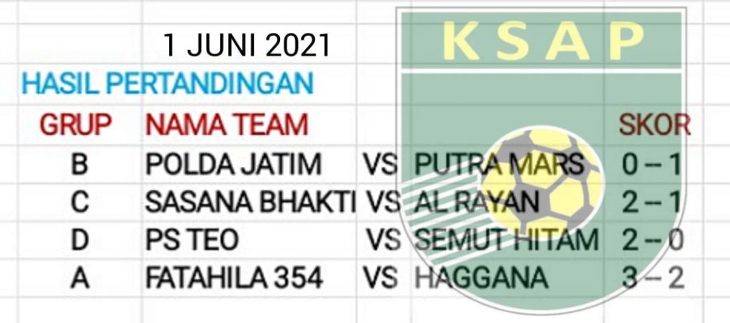 SURABAYA, Klik9.Com – Kesebelasan Sasana Bhakti (Sakti) Unika berhasil menyudahi perlawanan sengit Al Rayyan dengan skor 2-1, Selasa (1/6/2021) pagi pada lanjutan Grup C Pra Musim Internal Persebaya U-15 di Lapangan Karangan, Wiyung, Surabaya.