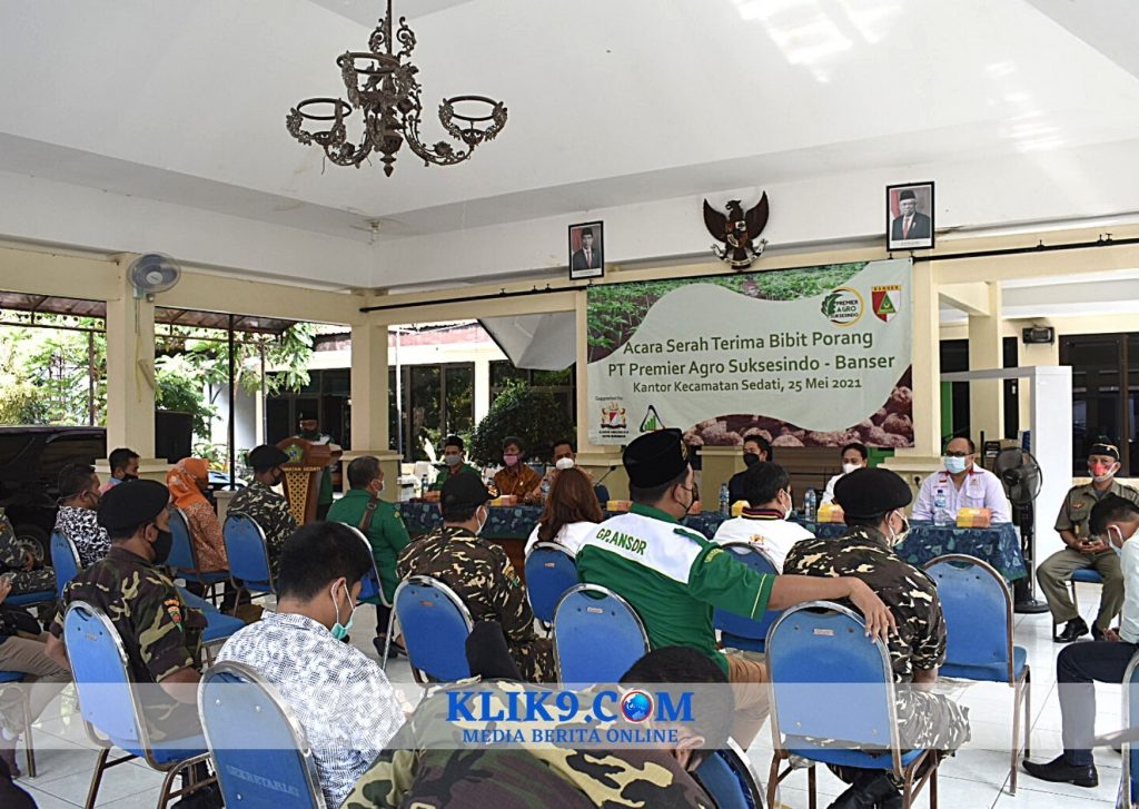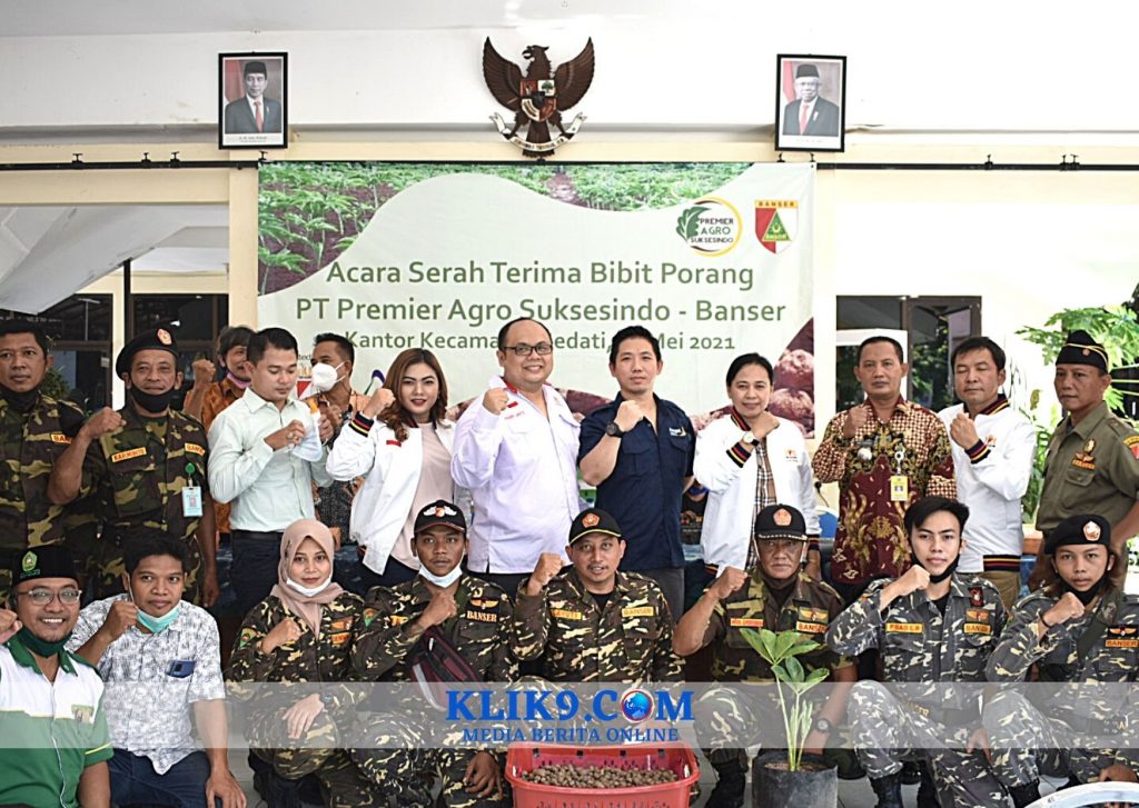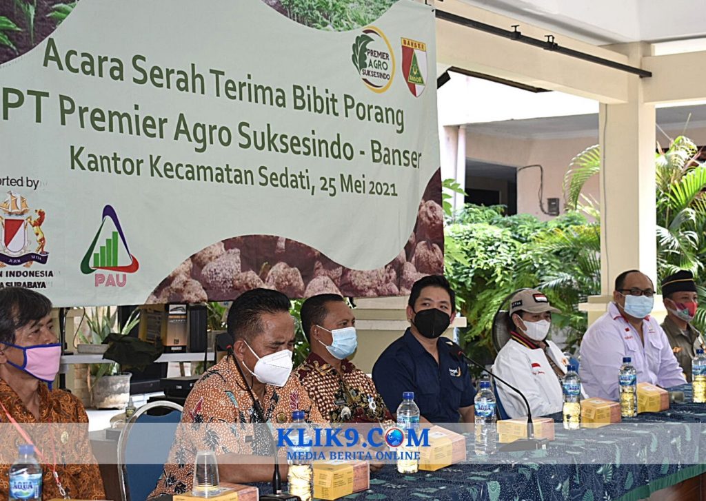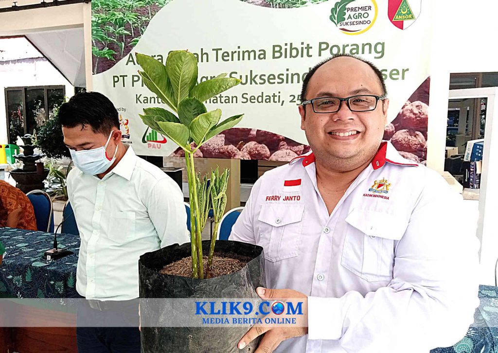 SIDOARJO, Klik9.Com – Kamar Dagang dan Industri (Kadin) Indonesia Kota Surabaya bersama PT Premier Agro Suksesindo (PAS) memberikan bantuan bibit tanaman porang kepada Banser untuk dibudidayakan, Selasa (25/5/2021) siang di Pendopo Kecamatan Sedati, Raya Pulungan, Sedati, Sidoarjo.