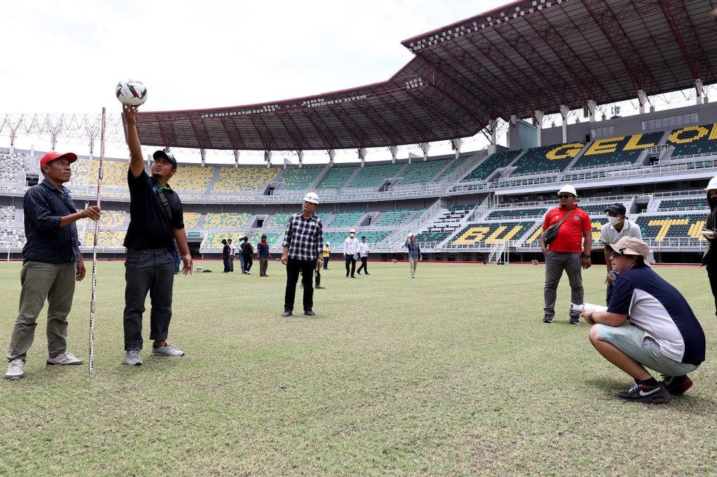 Ia menyampaikan, kedatangan Ketua PSSI yang juga menjabat sebagai Menteri Negara BUMN RI, Erick Thohir tidak sendiri. Ketua PSSI Erick Thohir didampingi oleh Menteri Negara Pemuda dan Olahraga (Menpora) RI Zainudin Amali, Wakil Ketua PSSI Ratu Tisha, dan perwakilan Kementerian PUPR. Kedatangan rombongan tersebut adalah untuk melakukan pengecekan terhadap Field Of Play (rumput, sistem penyiraman rumput, sistem drainase, dan lainnya), arena (tempat duduk, VIP Area), Media Broadcast, akses keluar dan masuk, Command Center, area medis, serta ruang parkir.