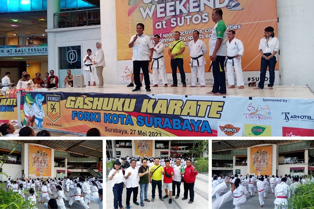 SURABAYA (Klik9.com) – FORKI Kota Surabaya kembali menggelar gashuku di mal Sutos, Sabtu (27/5/2023) sore. Lebih dari 200 atlet mulai sabuk hijau mengikuti sport weekend latihan karate bersama ini.