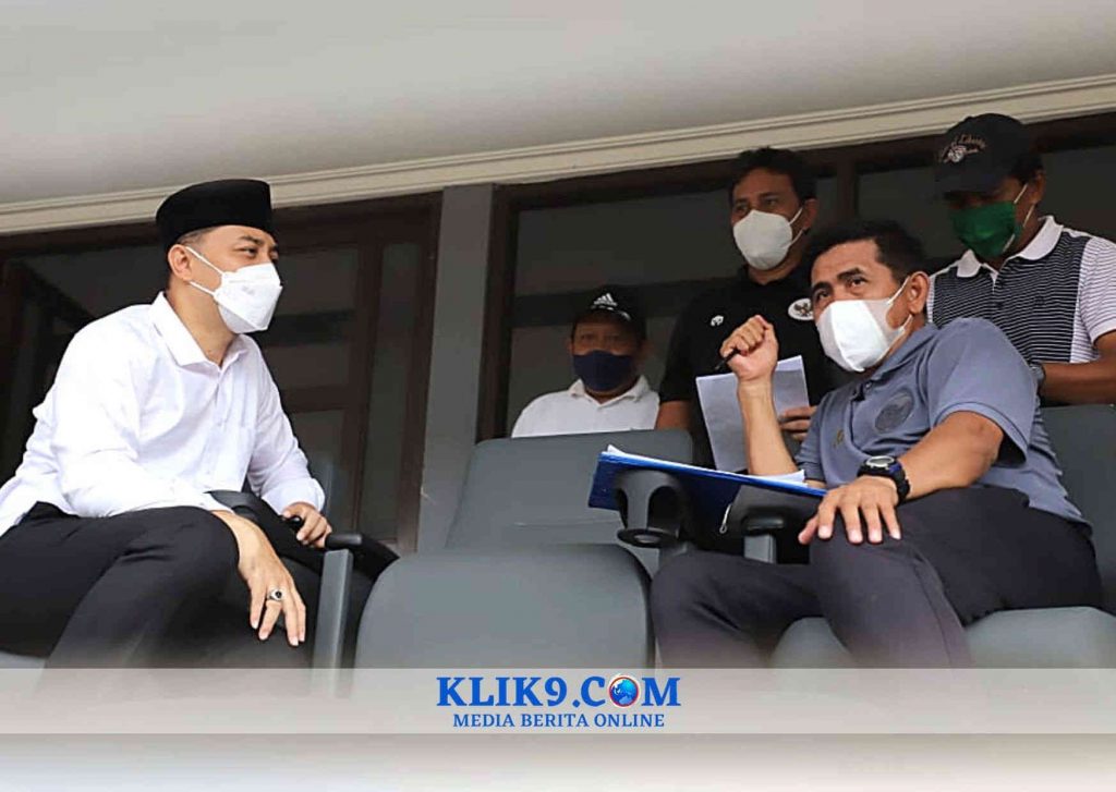 DIKLAT SURABAYA: Wali Kota Eri Cahyadi (kiri) bersama Bima Sakti, Minggu (6/6/2021) pagi di Stadion GBT, Surabaya. (K9/IST)