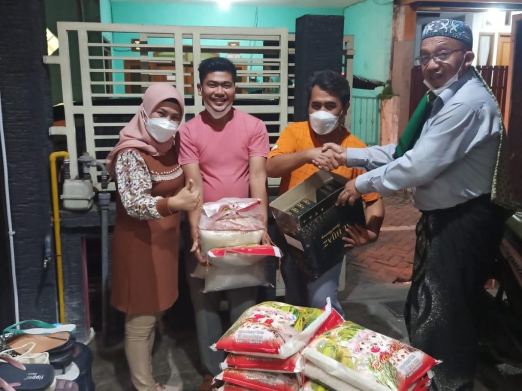 RAMADAN MUBAROK: Ketua SMSI Jatim H. S. Makin Rahmat, Kamis (14/4/2022) malam menyerahkan bantuan sosial ke pengurus yayasan dan tempat ibadah. (KS/IST)