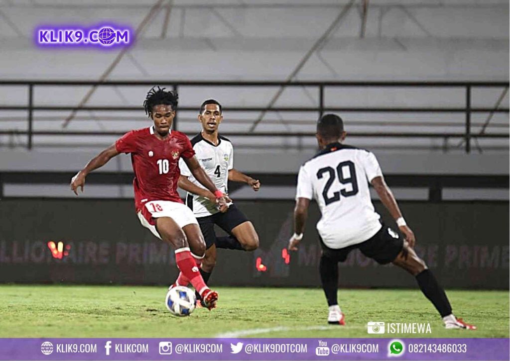 TIMNAS U-23: Wonder kid asal Madura United Ronaldo Joybera (merah) saat tampil bersama Timnas senior melawan Timor Leste dalam laga uji coba kalender FIFA beberapa waktu lalu. (KS/IST)