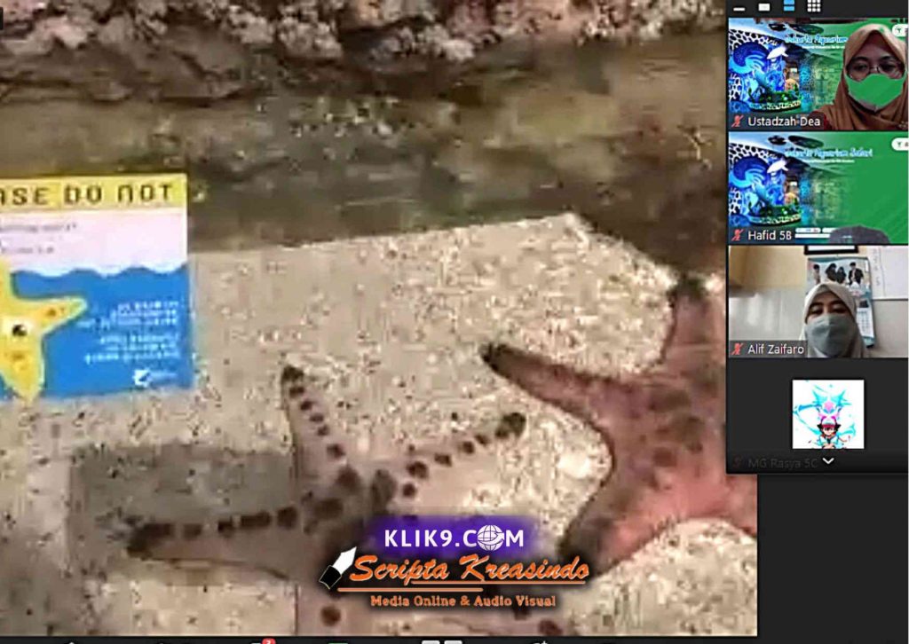 SATWA LAUT: Siswa SD Al Muslim menonton tayangan virtual Jakarta Aquarium Safari, Kamis (4/11/2021) di Sekolah Al Muslim, Jl Wadung Asri, Waru, Sidoarjo. (Dok ISTIMEWA)