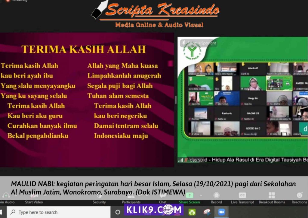 Kegiatan ini diikuti oleh seluruh siswa SD Al Muslim. Meskipun kegiatan pembelajaran tatap muka telah berjalan secara terbatas, namun pelaksanakan kegiatan Maulid Nabi Muhammad dilaksanakan secara virtual melalui Zoom Meeting untuk menghindari kerumunan di sekolah.
