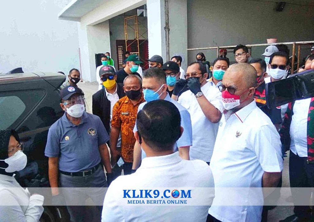 KAHMI JATIM: Haruna Soemitro (kanan) saat meninjau Stadion GBT bersama Menpora dan rombongan PSSI. (K9/HARUN)