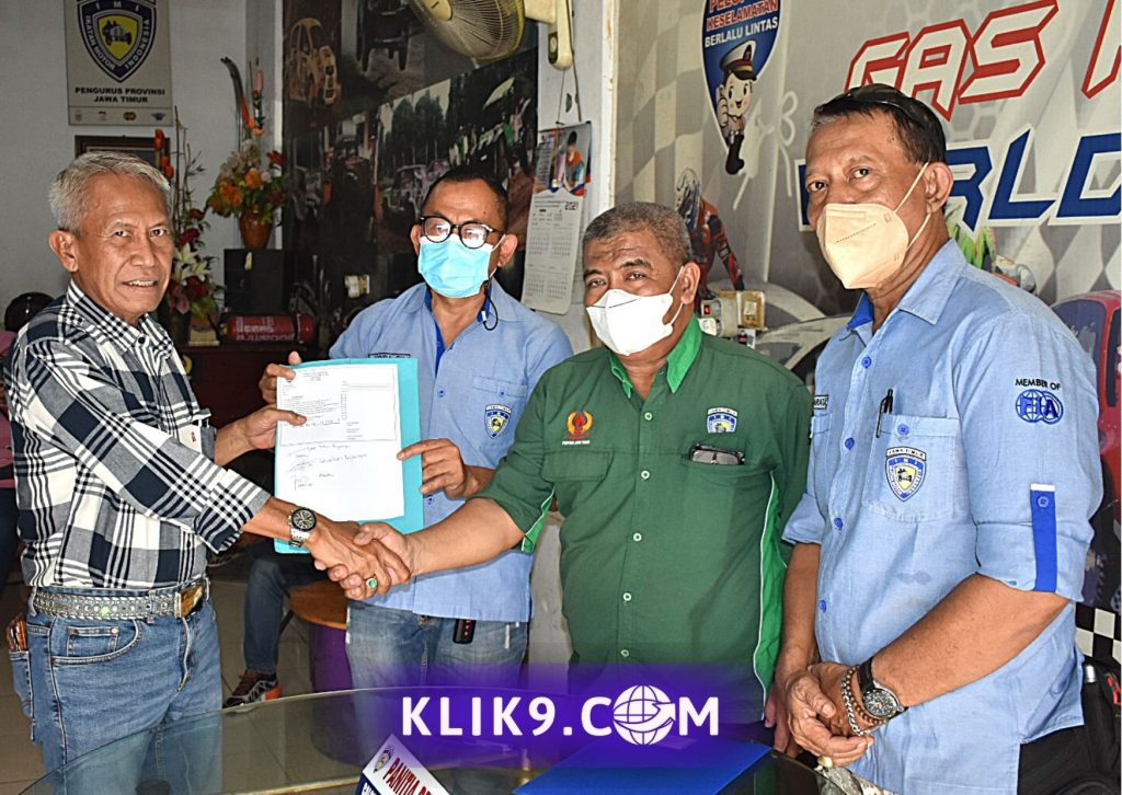 MUSPROV: Bambang Kapten menerima bukti pendaftaran Ketua IMI Jatim dari Panitia Penjaringan, Selasa (31/11/2021) di Kantor IMI Jatim, Raya Manyar, Menur Pumpungan, Sukolilo, Surabaya. (KLIK9/ISTIMEWA)