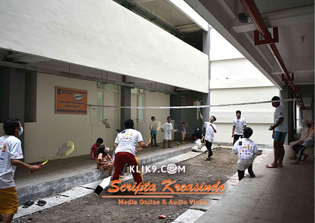 Klik9.com – Kegembiraan hadir di raut wajah anak-anak warga Rusun Gunung Anyar Sawah, Surabaya, Minggu (31/10/2021). Pasalnya, mulai pagi hingga siang mereka giat melakukan perlombaan bulu tangkis ganda campuran.