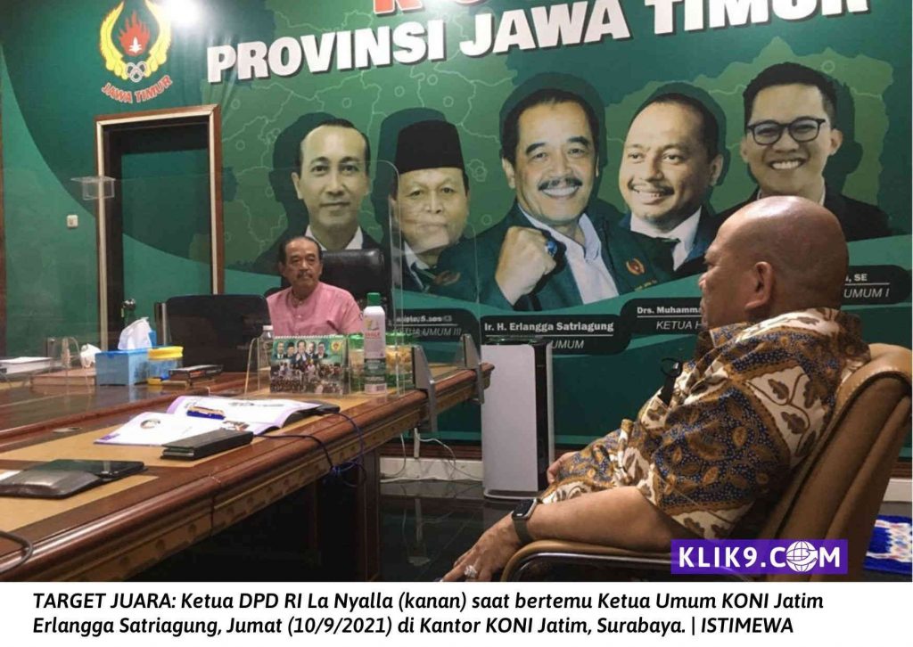 SURABAYA (Klik9.com) – Ketua DPD RI, AA LaNyalla Mahmud Mattalitti, mendukung penuh kontingen asal Jawa Timur (Jatim) yang menargetkan juara umum di Pekan Olahraga Nasional (PON) XX Papua.