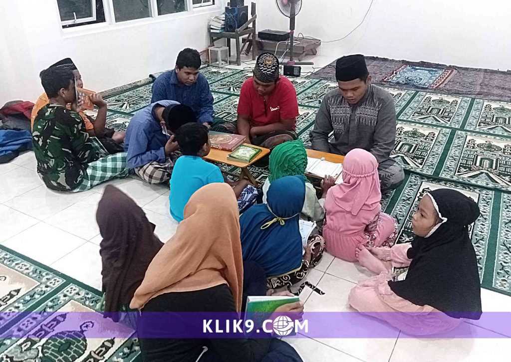 SURABAYA (Klik9.com) – Senyum lebar kembali terpancar dari raut wajah para santri TPQ Syekh Maulana Malik Ibrahim setelah menerima pemberian buku iqra’ (metode membaca Alquran) dari Ustaz Harun, Rabu (8/9/2021) petang usai Salat Maghrib di Musala Rusun Gunung Anyar Sawah, Surabaya.
