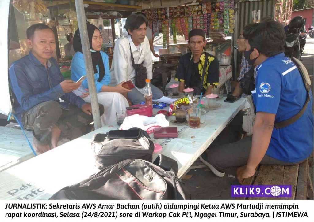 SURABAYA (Klik9.com) – Aliansi Wartawan Surabaya (AWS) bakal kembali melaksanakan bakti sosial (baksos). Hal ini terungkap dalam rapat koordinasi, Selasa (24/8/2021) lalu di Warkop Cak Pi’i, Jalan Ngagel Timur, Gubeng, Surabaya.