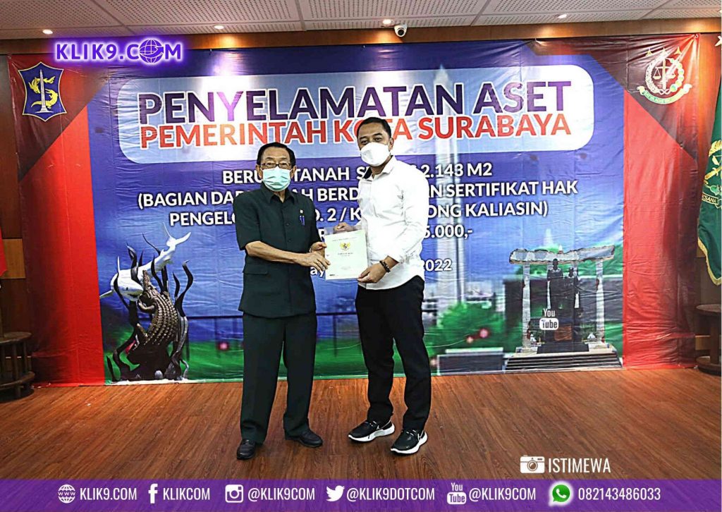 Proses penyerahan aset itu dilakukan di Kantor Kejati Jatim dengan disaksikan langsung oleh Kepala Kejati Jatim Muhammad Dofir beserta seluruh jajaran Kejati Jatim. Bahkan, pada saat itu Pemkot Surabaya menyerahkan piagam penghargaan kepada Kajati Jatim beserta jajarannya, Rabu (26/1/2022).