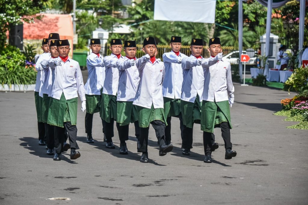 Sejak pagi, ratusan santri itu berdatangan ke Balai Kota Surabaya. Mereka menggunakan sarung dan paci hitam. Sedangkan santriwati menggunakan busana muslim. Upacara itu dimulai dengan pembacaan ayat suci Al-Quran, pembacaan UUD 45, dan ikrar santri. Bahkan, saat itu juga dibacakan sejarah Hari Santri yang berkaitan pula dengan resolusi jihad.