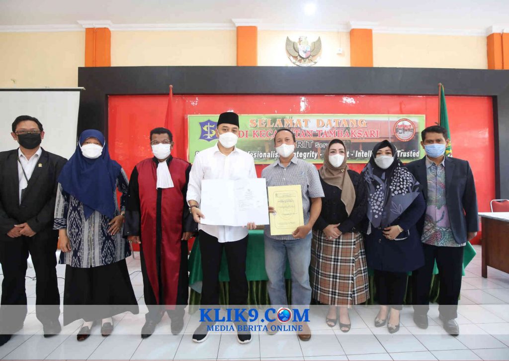 Dalam momen itu, Wali Kota Eri bersama Hakim PN Surabaya, Yohanes Hehamony secara simbolis menyerahkan dokumen kependudukan akta kematian kepada warga. Penyerahan ini, juga disaksikan Wakil Ketua beserta seluruh anggota Komisi A DPRD Kota Surabaya.