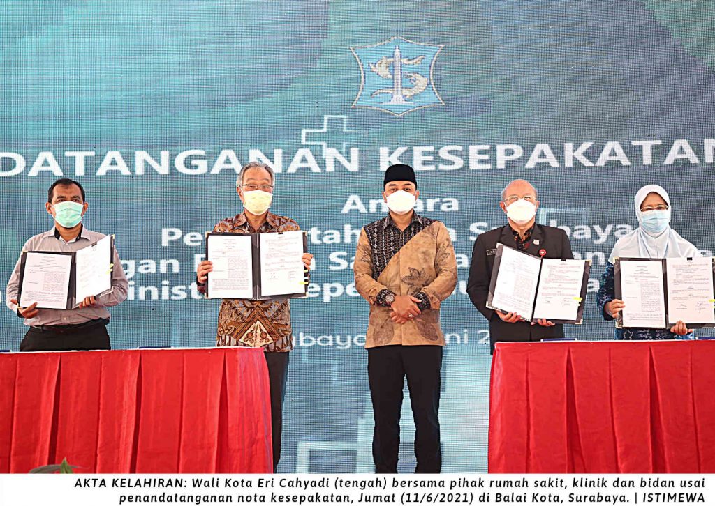 Klik9.Com – Upaya Pemerintah Kota (Pemkot) Surabaya dalam memperluas jangkauan pelayanan administrasi kependudukan dan pencatatan sipil (adminduk) terus dilakukan. Hari ini, Wali Kota Surabaya Eri Cahyadi melakukan Penandatanganan Nota Kesepakatan Bersama, antara Pemkot Surabaya dengan 38 Rumah Sakit (RS), 80 Bidan maupun klinik di Kota Pahlawan.