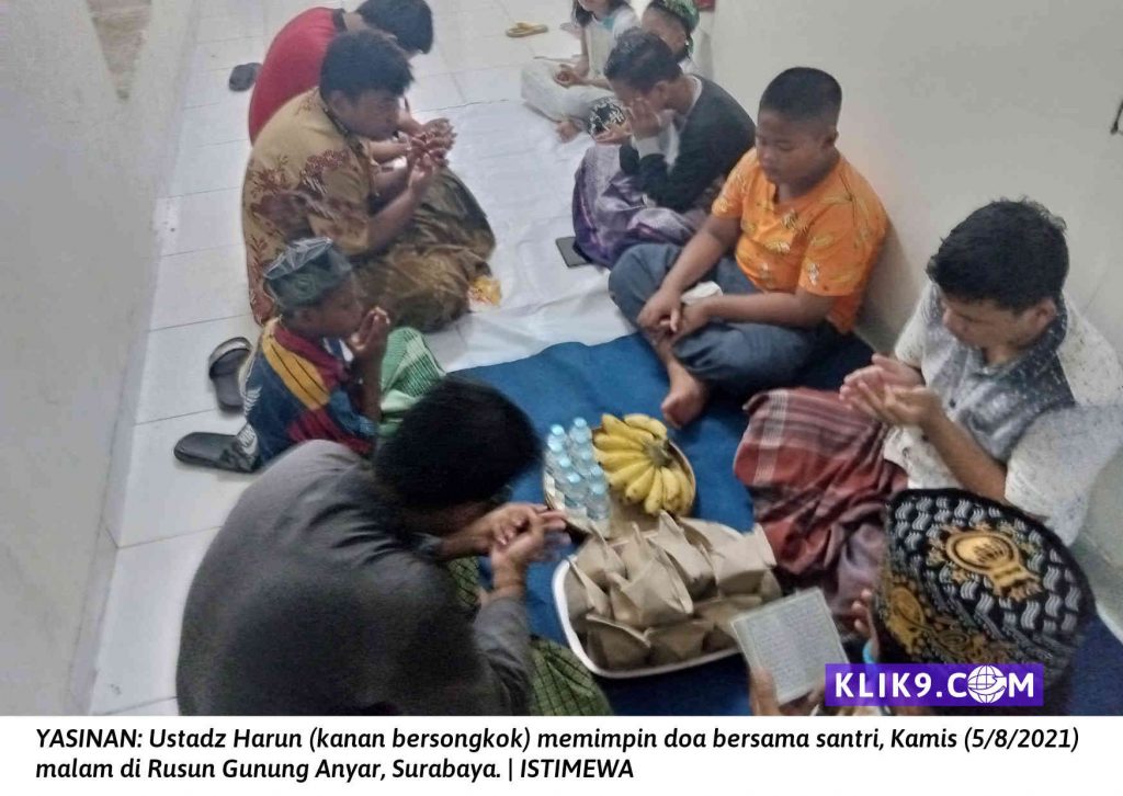 Klik9.com | Rutinitas pembacaan Surat Yasin kembali dilakukan oleh santri-santri TPQ Syech Maulana Malik Ibrahim, Kamis (5/8/2021) malam setelah Salat Maghrib di Rusun Gunung Anyar Tambak, Surabaya. Kegiatan dipimpin oleh jurnalis harian, Harun Effendy.