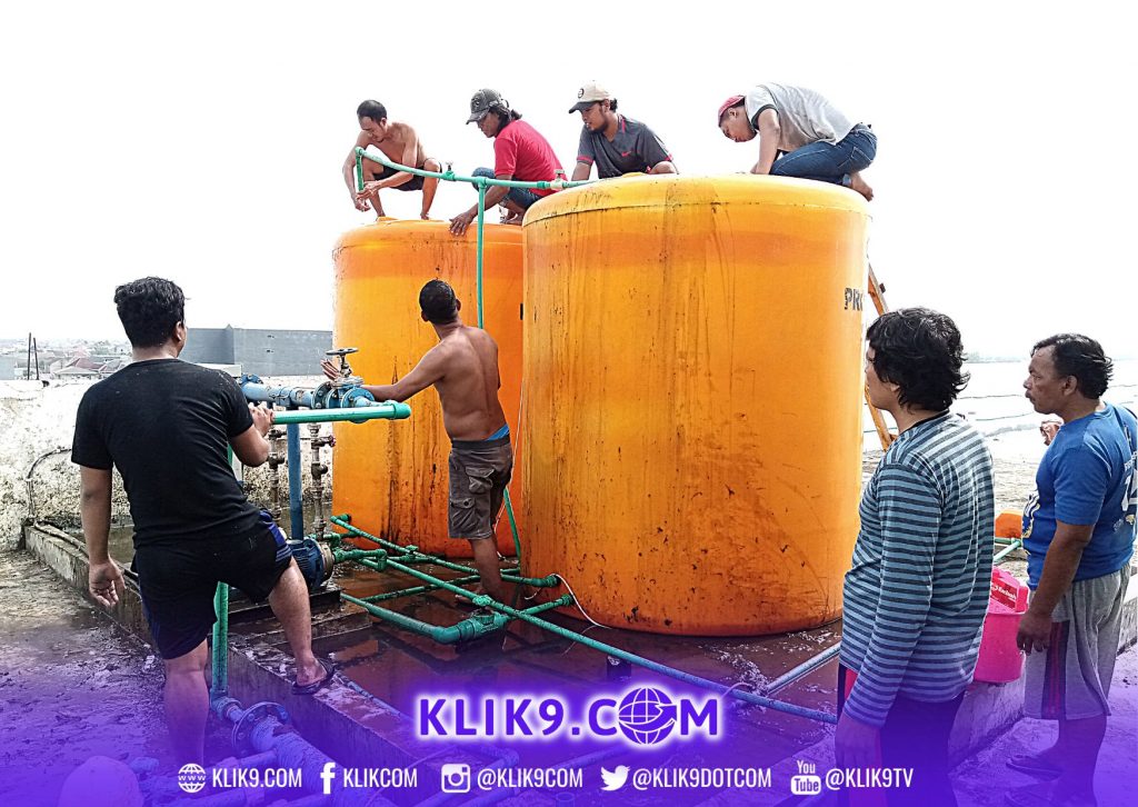 Proses pembersihan dilakukan secara manual dengan cara bergotong-royong. Alat yang digunakan pun ala kadarnya, seperti tangga kayu untuk menaiki tandon setinggi 2 meter, kemudian timba bekas cat yang diikat tali.