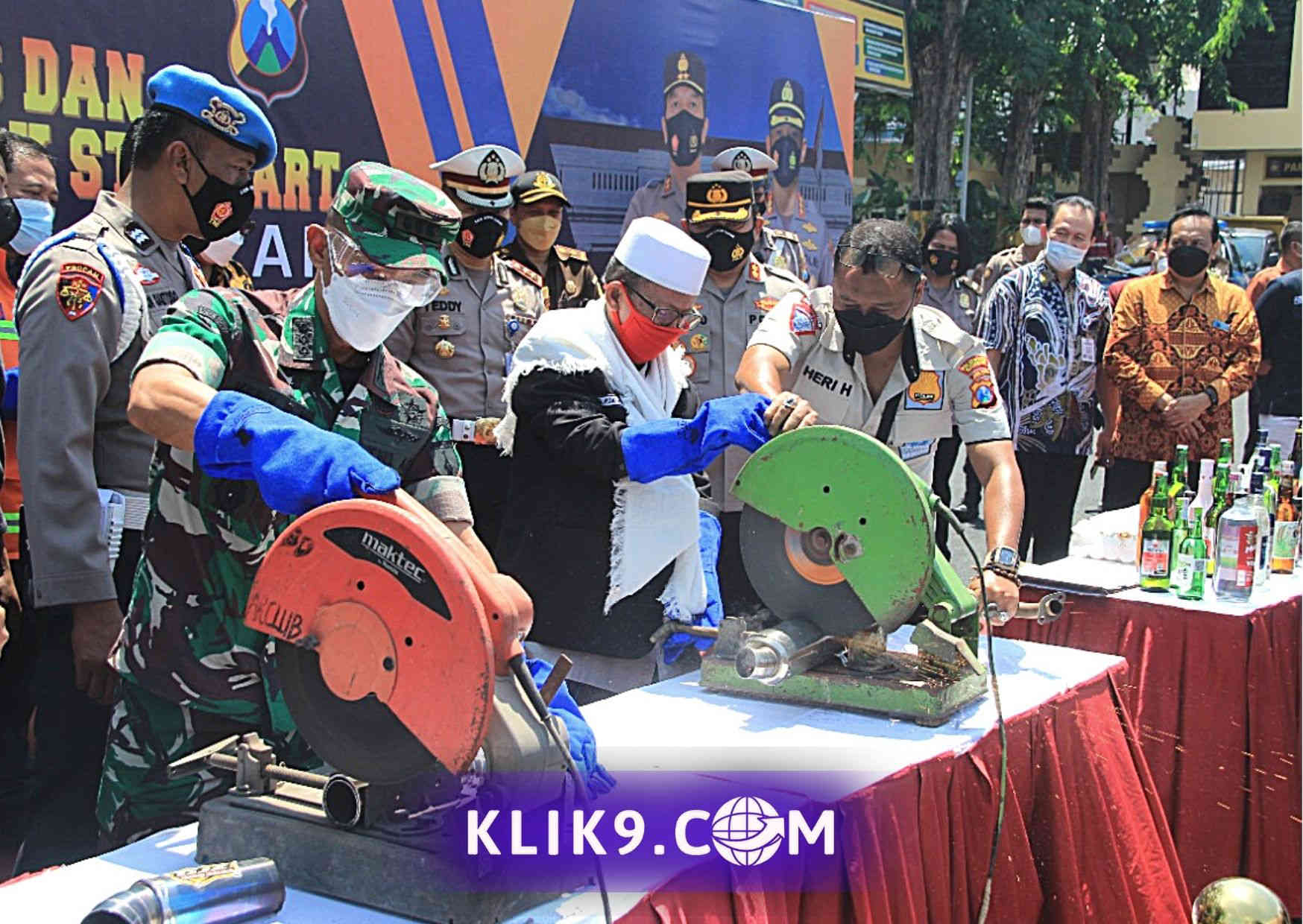 Polrestabes Surabaya Musnahkan Ribuan Botol Miras dan Knalpot Brong