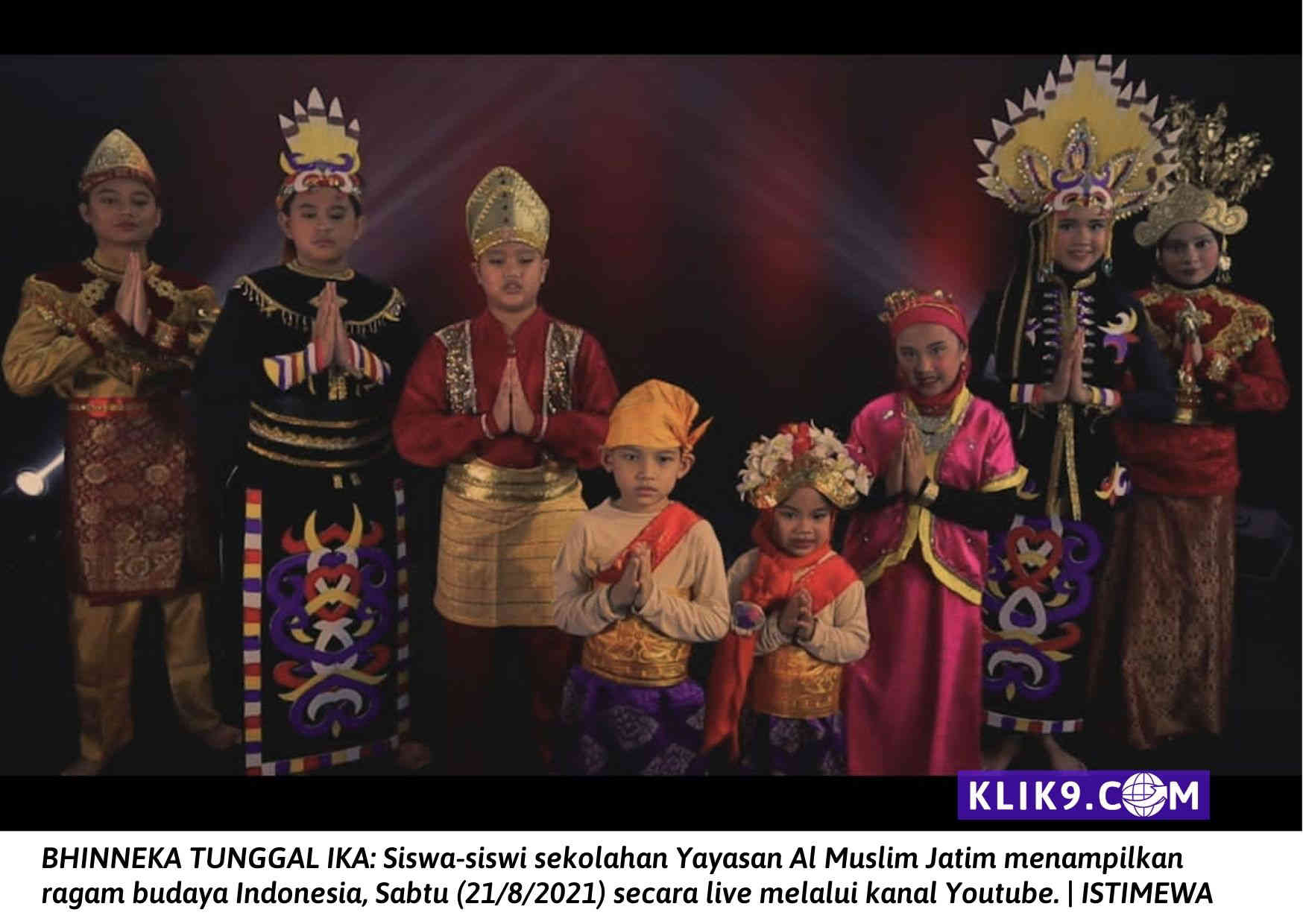 SIDOARJO (Klik9.com) – Lembaga pendidikan KB-TK-SD-SMP-SMA Yayasan Al Muslim mempersembahkan video kebhinekaan budaya Indonesia dengan tema “Bangga Indonesia” yang ditayangkan secara langsung, Sabtu (21/8/2021) melalui kanal Youtube Al Muslim Jatim. Dalam tayangan yang dikemas model video klip itu ditampilkan ragam…